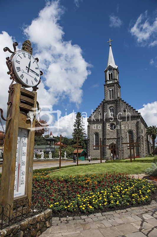 A Igreja Matriz de São Pedro, localizada no coração de Gramado, é um dos pontos turísticos mais emblemáticos da cidade, atraindo visitantes não apenas pela sua beleza arquitetônica, mas também pela sua importância histórica e cultural. Construída em pedra basáltica, a igreja se destaca na paisagem urbana, com sua torre imponente de 46 metros e seus vitrais coloridos que contam passagens bíblicas.